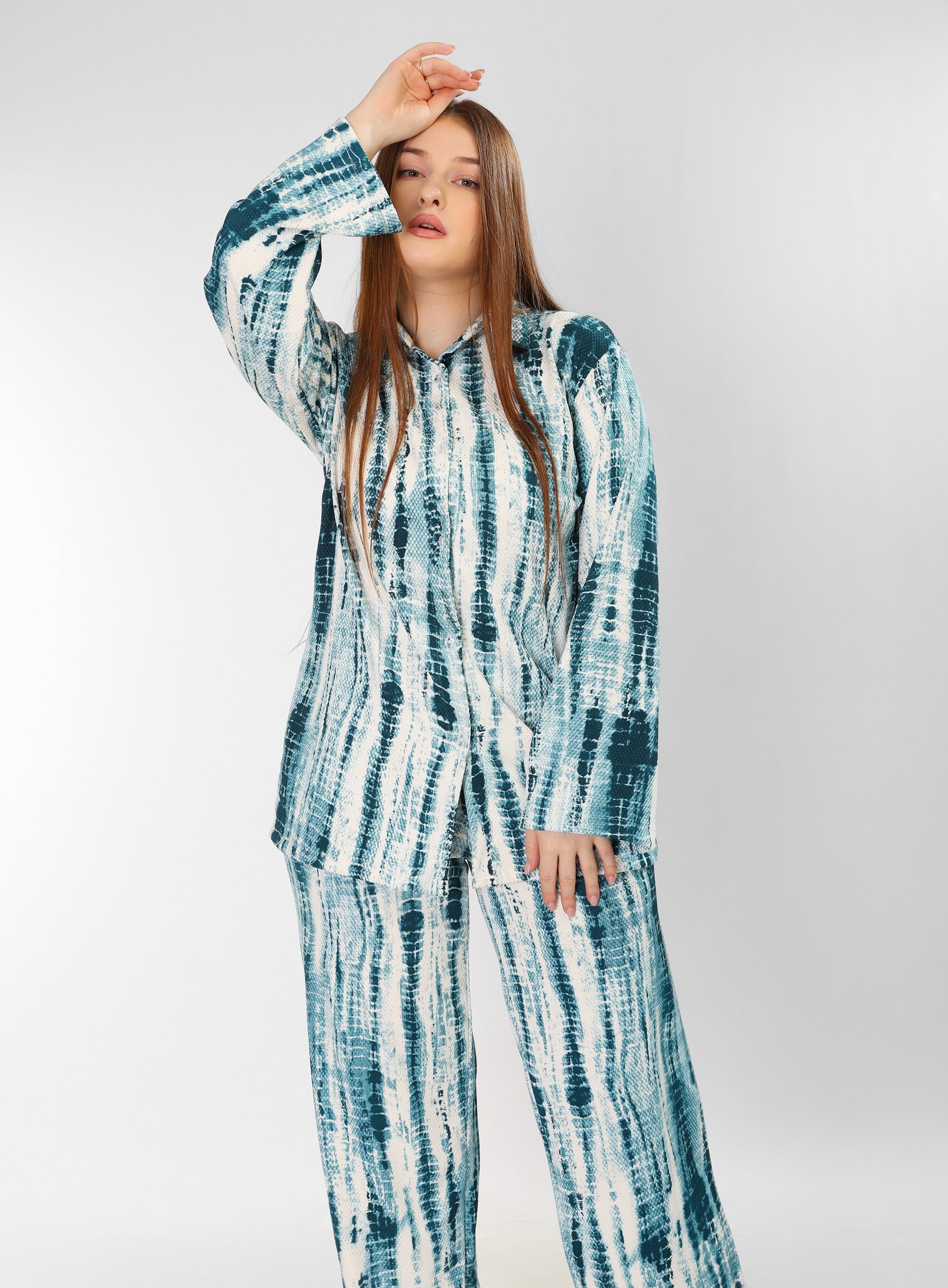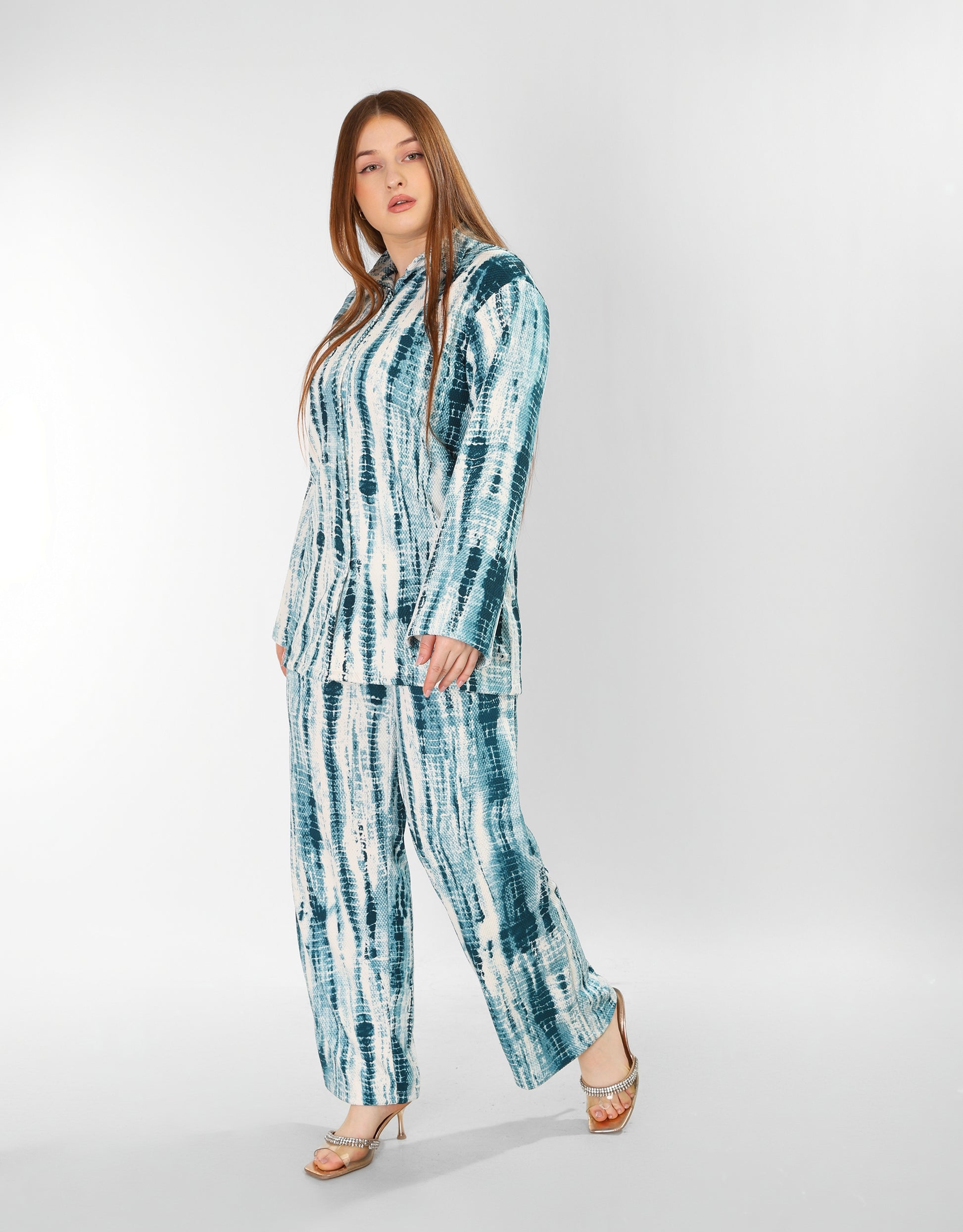 Make a powerful entrance with our Wave Oversized Suit — a luxurious fusion of dynamic design and elevated style. Crafted from high-quality fabric featuring a distinctive wavy blue pattern, this suit is made for the modern woman who commands attention effortlessly.